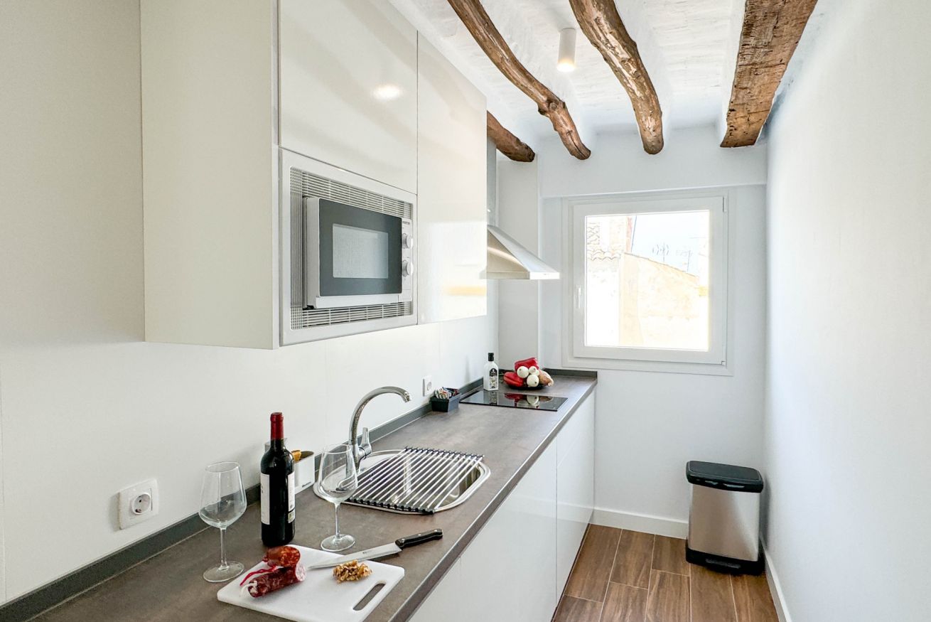 Este apartamento es ideal para familias o grupos de amigos. Cuenta con dos dormitorios, uno con una cama King Size y el otro con dos camas individuales. El salón es amplio y luminoso, con una cocina americana totalmente equipada. El baño tiene ducha y dispone de todos los amenities necesarios.