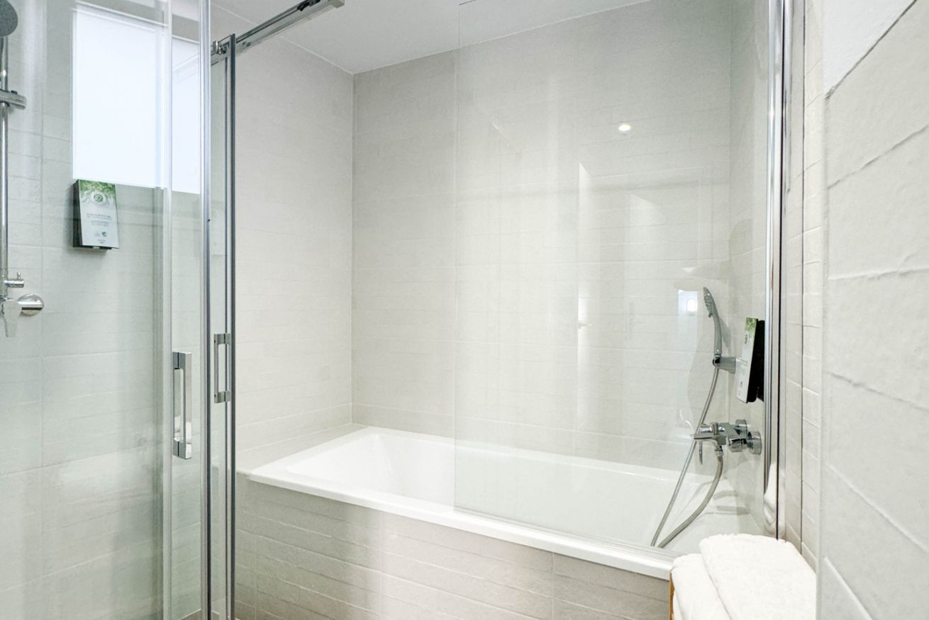 Experimenta el lujo en este apartamento, que ofrece una cama King Size o dos camas individuales, junto con un sofá cama para dos personas. Además, disfruta de un baño completo con ducha y bañera para una experiencia de relajación completa.